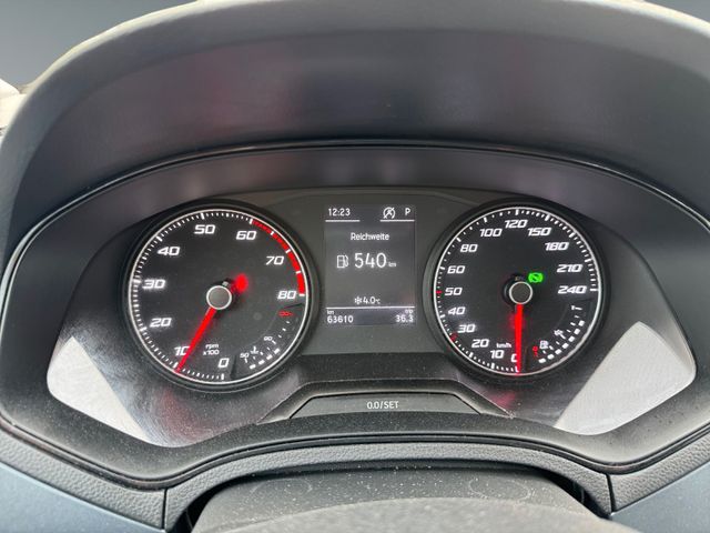 3. Bremsleuchte, Airbag Beifahrerseite abschaltbar, Airbag Fahrer-/Beifahrerseite, Antriebs-Schlupfregelung (ASR), Außenspiegel Dachfarbe, Außentemperaturanzeige, Bordcomputer, Bremsassistent, Dachreling, Einschaltautomatik für Fahrlicht, Elektr. Bremskraftverteilung, Elektron. Querdifferentialsperre (XDS), Fahrassistenz-System: Berganfahr-Assistent (Hill-Holder), Fahrassistenz-System: Multikollisionsbremse (Multi Collision Brake), Fahrassistenz-System: Müdigkeitserkennung, Fahrassistenz-System: Spurhalteassistent, Fahrassistenz-System: Umfeldbeobachtungssystem (Front assist) mit City-Notbremsfunktion, Gepäckraumabdeckung / Rollo, Heckscheibe heizbar, Heckscheibenwischer, Innenraumfilter: Pollenfilter, Isofix-Aufnahmen für Kindersitz, Karosserie: 5-türig, Kofferraumbeleuchtung, Kombiinstrument digital (8 Zoll), Kopf-Airbag-System, Kopfstützen hinten, Kopfstützen vorn, Lenkrad (Leder) mit Multifunktion, Lenksäule (Lenkrad) höhenverstellbar, Lenksäule (Lenkrad) verstellbar, LM-Felgen, Modellpflege, Motor 1,0 Ltr. - 81 kW TSI, Notrufsystem, Otto-Partikelfilter (OPF), Radstand 2566 mm, Reifendruck-Kontrollsystem, Reifenkontroll-Anzeige, Rücksitzlehne geteilt/klappbar (1/3-2/3), Schadstoffarm nach Abgasnorm Euro 6d, Scheinwerfer LED, SEAT Media-System, SEAT Media-System Touch Colour, Seitenairbag, Sitz vorn links höhenverstellbar, Start/Stop-Anlage, Steckdose (12V-Anschluß) vorn, Türgriffe außen lackiert, Wärmeschutzverglasung