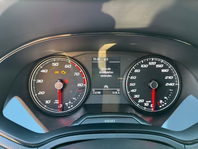 3. Bremsleuchte, Airbag Beifahrerseite abschaltbar, Airbag Fahrer-/Beifahrerseite, Ambiente-Beleuchtung LED, Antriebs-Schlupfregelung (ASR), Außenspiegel schwarz, Außentemperaturanzeige, Bordcomputer, Bremsassistent, Dachhimmel schwarz, Einschaltautomatik für Fahrlicht, Elektron. Differentialsperre (EDS), Fahrassistenz-System: Berganfahr-Assistent (Hill-Holder), Fahrassistenz-System: Fahrprofilauswahl (SEAT Drive Profile), Fahrassistenz-System: Multikollisionsbremse (Multi Collision Brake), Fahrassistenz-System: Umfeldbeobachtungssystem (Front assist) mit City-Notbremsfunktion, Gepäckraumabdeckung / Rollo, Geschwindigkeits-Begrenzeranlage, Heckleuchten LED, Heckscheibe heizbar, Heckscheibenwischer, Heckspoiler, Infotain-Paket, Innenraumfilter: Pollenfilter, Innovations-Paket, Isofix-Aufnahmen für Kindersitz, Karosserie: 5-türig, Klima-Komfort-Paket, Kopf-Airbag-System, Kopfstützen hinten, Kopfstützen vorn, Lenkrad mit Multifunktion, Lenksäule (Lenkrad) höhenverstellbar, Lichtassistent (Coming Home, Leaving Home), LM-Felgen, Motor 1,0 Ltr. - 70 kW TSI, Otto-Partikelfilter (OPF), Radioempfang digital (DAB+), Reifen-Reparaturset, Reifenkontroll-Anzeige, Rücksitzlehne geteilt/klappbar (1/3-2/3), Schadstoffarm nach Abgasnorm Euro 6d, Schalt-/Wählhebelgriff Leder, Seitenairbag, Seitenschweller schwarz, Sport-Fahrwerk FR / Cupra, Start/Stop-Anlage, Steckdose (12V-Anschluß) vorn, Stoßfänger FR-Design, WLAN-Hotspot inkl. Full Link, Wärmeschutzverglasung